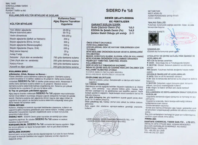 SIDERO Iron Chelate – EDDHA – EC Fertilizer